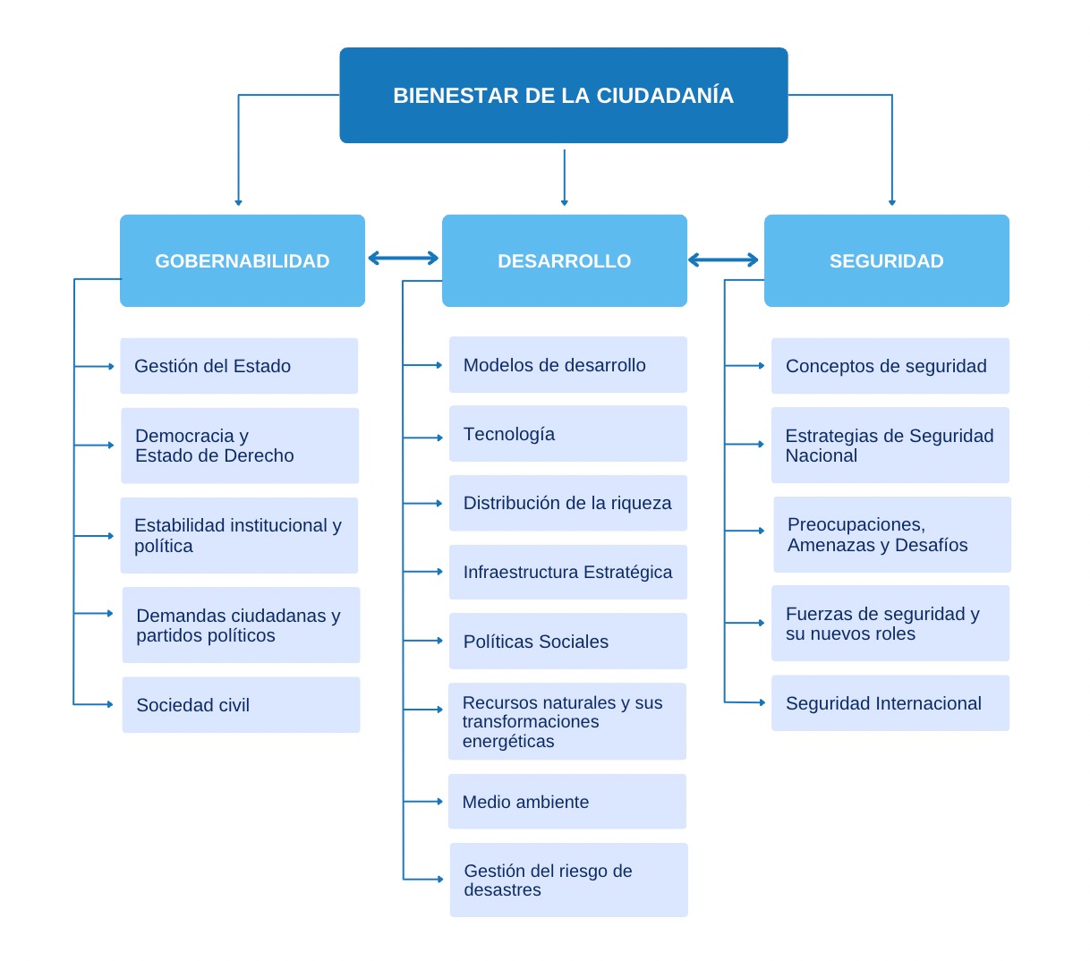 Nuestras líneas de investigación incluyen las principales áreas de conocimiento relacionadas con la gobernabilidad, desarrollo y seguridad